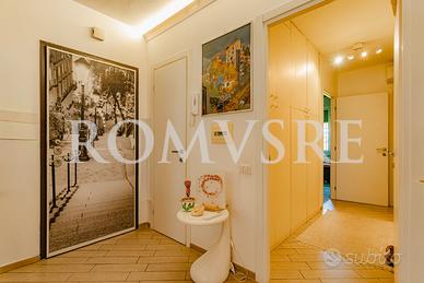 Appartamento a Roma, Torrino Sud in Via Fiume Bianco, adiacente tutti i servizi, le scuole, e il Bus per la Metro B, e a pochi minuti dal treno di Tor di Valle, ROMVS RE propone un trilocale posto al 1° piano esposto a Sud di 124 mq commerciali con vista sul verde condominiale e composto da: Soggiorno doppio a vista con balcone vivibile, angolo cottura con balconcino di servizio, disimpegno con armadio a muro, 2 camere, di cui la padronale di 14 mq, la seconda camera di 12 mq ca fornita di balcone con vista sul verde, 2 bagni di cui uno con doccia e finestra, l'altro con doccia e areatore, cantina di 7 mq e un posto auto coperto di 13 mq La casa a Roma, Adiacente Eur, Torrino Sud, Via Fiume Bianco, è dotata di porta blindata, videocitofono, pavimenti in parquet naturale nella zona notte e gres porcellanato nella zona giorno, aria condizionata in salone e disimpegno, riscaldamento con teleriscaldamento Acea, impianto di allarme, infissi in ferro bianco con doppi vetri, grate di sicurezza e zanzariere.