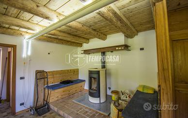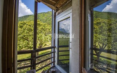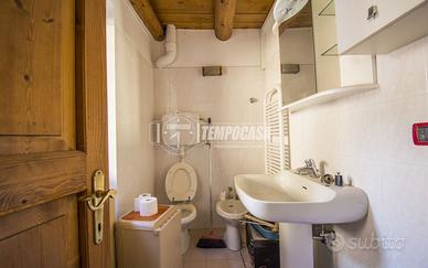Al secondo piano si apre una spaziosa zona giorno luminosa, con bagno finestrato e due balconi con affaccio sul paesaggio circostante. Il soggiorno ospita una stufa a pellet nuova, che affianca la caldaia autonoma a GPL.