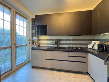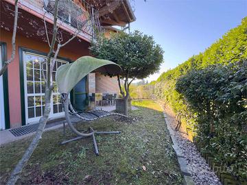 Nel cuore di Travedona-Monate, in Via Giuseppe Mercalli, proponiamo in vendita un appartamento inserito in un residence di pregio, curato nei dettagli e caratterizzato da una piacevole corte interna e architetture particolari: un contesto riservato, ideale per chi cerca tranquillità senza rinunciare alla comodità dei servizi e alla vicinanza del Lago di Monate (raggiungibile a piedi). Labitazione si sviluppa su due livelli. Al piano terra troviamo la zona giorno composta da soggiorno, cucina abitabile, disimpegno, due camere da letto e bagno. Gli infissi in legno con doppio vetro garantiscono comfort e buon isolamento. Il vero valore aggiunto è il piano interrato, rifinito e organizzato come una grande taverna/spazio polifunzionale con cucina e secondo bagno: perfetto come zona hobby, area ospiti, studio o living bis. Le bocche di lupo molto ampie rendono gli ambienti luminosi e ariosi. Da qui si accede direttamente al box doppio di circa 30 mq, una comodità rara e preziosa. Completa la proprietà un giardino privato di circa 50 mq, ideale per pranzi allaperto, relax o per chi ha un amico a quattro zampe.