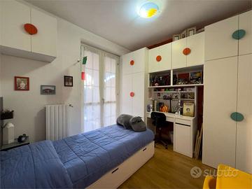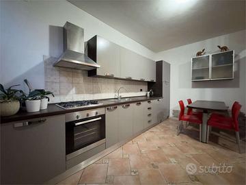 Al piano terra: 2 camere, bagno, soggiorno e cucina abitabile, piano interrato: taverna con cucina e bagno, molto luminosa (bocche di lupo grandi), collegamento diretto alla taverna e box doppio ~30 mq, giardino privato ~50 mq, Infissi legno/doppio vetro. Per maggiori informazioni contattateci