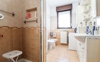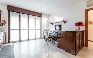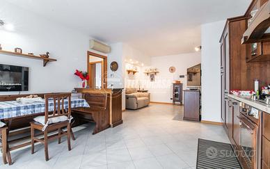 DESCRIZIONE: appena varcata la soglia d'ingresso si viene accolti da una zona giorno luminosa e ben organizzata, dove il soggiorno e la cucina a vista si fondono in un unico ambiente caldo e accogliente. Qui, la luce naturale filtra generosa dalle ampie vetrate che si affacciano direttamente sul terrazzo coperto: uno spazio esterno comodo e riservato, ideale per pranzi all'aperto, momenti di relax o per chi ama coltivare un angolo verde in casa. Proseguendo attraverso un comodo disimpegno si accede alla zona notte pensata per offrire privacy e tranquillità dove troviamo la camera matrimoniale ampia e perfetta per chi desidera un rifugio intimo e silenzioso a fine giornata, la seconda camera, più raccolta, ideale come cameretta per bambini, studio o stanza per gli ospiti con accesso ad un balcone e il bagno finestrato con vasca. L'ambiente è curato e funzionale con possibilità di personalizzazione secondo le esigenze. Completano la proprietà un box doppio privato di 30mq e una comoda cantina perfetta per riporre oggetti stagionali, valigie, scaffalature o conservare scorte alimentari e vini.