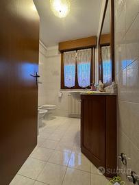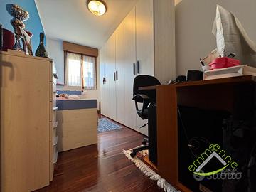 Arino: luminoso soggiorno, con cucina a vista, da cui si accede al terrazzo. Appartamento posto al piano primo ed ultimo, in scala di quattro unità. La zona notte offre un'ampia camera matrimoniale di ca.16,50 mq e una generosa camera singola, entrambe pavimentate il legno parquet. Dal disimpegno si accede inoltre al bagno padronale e al bagno/ lavanderia. Munito di portoncino blindato, serramenti in legno con vetro camera, tenda da sole esterna, allarme. Ampio garage. Situato in zona tranquilla, circondata dal verde e allo stesso tempo comoda a negozi e servizi.