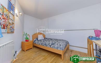 La zona notte è composta da due camere da letto, di cui una matrimoniale e una singola di generose dimensioni, oltre a un bagno finestrato con sanitari sospesi e finiture moderne.