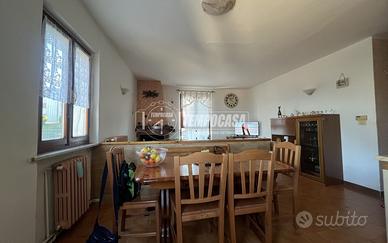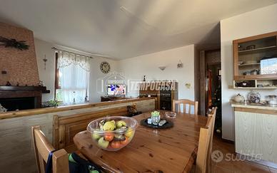 Situato al primo piano, l'appartamento si apre su un luminosissimo soggiorno con cucina a vista, un ambiente ampio e accogliente arricchito da un camino che dona calore e charme, perfetto per momenti di relax o convivialità.