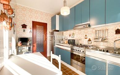 L'appartamento si apre su un atrio d'ingresso che conduce all'ampia e luminosa zona giorno, con accesso diretto al terrazzo vivibile, e cucina abitabile che gode di balcone. La zona notte comprende un funzionale disimpegno, una spaziosa camera matrimoniale e un servizio finestrato. Grazie all'ampia metratura e alla disposizione degli ambienti è possibile ricavare una seconda camera da letto.