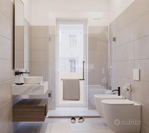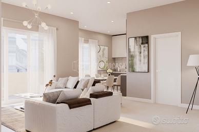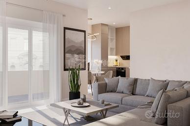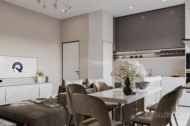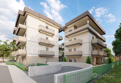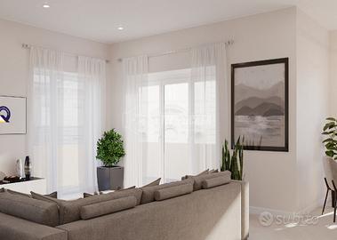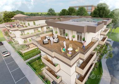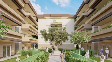 Appartamento con box doppio e cantina inclusi di 3 locali doppi servizi al P. T. di 111 mq commerciali con giardino privato di 125mq con ampia zona giorno. L'immobile sarà così composto: Soggiorno doppio con cucina a vista di 35 mq, N° 2 Camere, N°2 bagni finestrati (uno con porta finestra) e giardino privato. Serramenti il Alluminio-Legno vetro triplo.