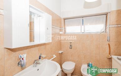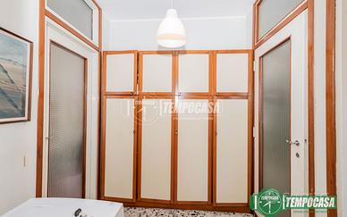 La casa presenta pavimentazione in marmo in tutti gli ambienti, ad eccezione del bagno in cui troviamo la ceramica. Gli infissi sono in alluminio con vetro singolo e l'immobile è dotato di impianto di aria condizionata con split sia nella zona giorno che in entrambe le camere. La tripla esposizione rende l'appartamento arioso e particolarmente luminoso: il soggiorno affaccia a est e a nord, il cucinotto, la camera singola e il bagno sono esposti a est, mentre la camera matrimoniale gode di un doppio affaccio a est e sud.