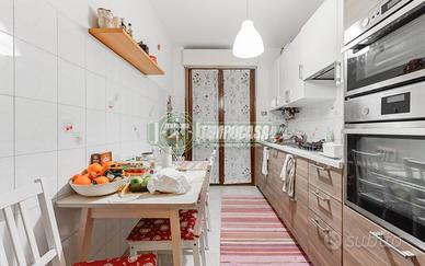 Appartamento di 3 LOCALI con BOX così disposto: Ingresso su disimpegno, cucina abitabile con primo accesso al balcone esposto a EST e ampia zona giorno. Tramite secondo disimpegno accediamo alla zona notte fornita di due spaziose camere da letto, di cui la principale dispone di un secondo spazio esterno e il servizio. L'immobile è sito al terzo piano con ascensore.