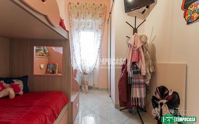 L'appartamento si trova al piano rialzato in un piccolo contesto con sole quattro famiglie, ed è composto da un bel soggiorno con cucina open space da cui si può accedere ad un balcone, una camera matrimoniale con un altro balcone, una cameretta con cabina armadio, un bagno ed un ripostiglio.