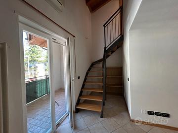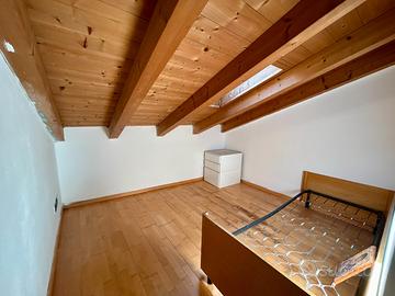 In piccolo contesto condominiale di sole 6 unità vendiamo caratteristico trilocale mansardato distribuito su due livelli. Al primo livello: soggiorno-pranzo, stanza bagno e balcone, ultimo piano: stanza matrimoniale con travi a vista e funzionale guardaroba/stanza ripostiglio. Completano l'unità garage e un comodo posto auto privato. Termo autonomo, spese condominiali molto contenute. APE in fase di rilascio. Libero.