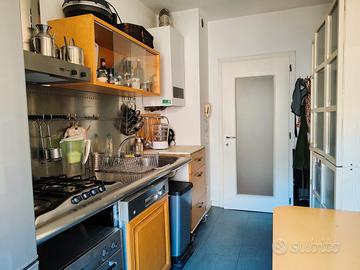 Trento, in via dei Muredei, proponiamo in vendita luminoso appartamento sito a 4° piano servito da ascensore, composto da ingresso, soggiorno esposto ad ovest con uscita sul balcone, cucina separata, disimpegno notte, due stanze da letto, doppi servizi e piccolo ripostiglio. Completo di cantina e posto auto di proprietà. Per informazioni si prega di telefonare al