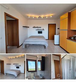 L'abitazione si sviluppa in un unico ambiente luminoso, ampia zona giorno con cucina attrezzata con accesso al balcone, perfetto per uno spazio aggiuntivo. La zona notte viene separata dall'ambiente giorno dal letto matrimoniale.