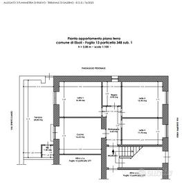 Piena proprietà di abitazione ubicata al piano terra di un piccolo edificio residenziale condominiale, con interno 2, avente una superficie utile calpestabile di 73,55 m2 con altezza interna di 3,08 m e composta di 4,5 vani così destinati: n. 1 cucina, n. 3 camere da letto, n. 1 bagno con disimpegno centrale e un ampio terrazzo antistante la cucina e l'adiacente camera da letto. Le finiture dell'immobile possono ritenersi datate con segni di usura diffusi, ma nel complesso ancora idonee all'uso. L'appartamento è fornito di impianto elettrico, idrico, e gas: attivi e funzionanti. I pavimenti sono in gres porcellanato, le soglie e le ornie in pietra, gli infissi esterni in alluminio con persiane avvolgibili in PVC e grate di sicurezza in ferro. Tutti gli ambienti sono intonacati e tinteggiati. Il bagno e la cucina sono in parte rivestite con piastrelle di ceramica. I pezzi igienici sono in vetroceramica, la rubinetteria è del tipo cromato e le porte interne sono in legno tamburato. L'abitazione residenziale fa parte di un piccolo edificio di quattro piani fuori terra denominato "CONDOMINIO PALAZZO DI BIASE", individuato in ambito urbano tra centro storico e area di espansione del Comune di Eboli (SA), all'attuale via Giuseppe Verdi n. 22 con servizi, viabilità e infrastrutture ben attrezzate.