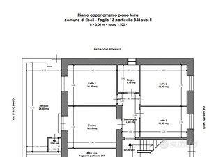 Piena proprietà di abitazione ubicata al piano terra di un piccolo edificio residenziale condominiale, con interno 2, avente una superficie utile calpestabile di 73,55 m2 con altezza interna di 3,08 m e composta di 4,5 vani così destinati: n. 1 cucina, n. 3 camere da letto, n. 1 bagno con disimpegno centrale e un ampio terrazzo antistante la cucina e l'adiacente camera da letto. Le finiture dell'immobile possono ritenersi datate con segni di usura diffusi, ma nel complesso ancora idonee all'uso. L'appartamento è fornito di impianto elettrico, idrico, e gas: attivi e funzionanti. I pavimenti sono in gres porcellanato, le soglie e le ornie in pietra, gli infissi esterni in alluminio con persiane avvolgibili in PVC e grate di sicurezza in ferro. Tutti gli ambienti sono intonacati e tinteggiati. Il bagno e la cucina sono in parte rivestite con piastrelle di ceramica. I pezzi igienici sono in vetroceramica, la rubinetteria è del tipo cromato e le porte interne sono in legno tamburato. L'abitazione residenziale fa parte di un piccolo edificio di quattro piani fuori terra denominato "CONDOMINIO PALAZZO DI BIASE", individuato in ambito urbano tra centro storico e area di espansione del Comune di Eboli (SA), all'attuale via Giuseppe Verdi n. 22 con servizi, viabilità e infrastrutture ben attrezzate.