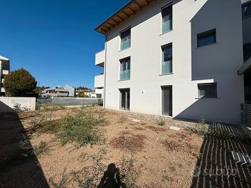 In contesto residenziale di nuova costruzione, proponiamo appartamento tricamere al piano terra di 120 mq, con ampio giardino privato di 250 mq e garage doppio.