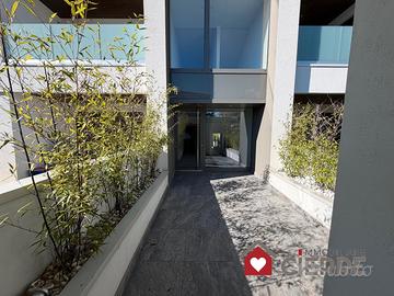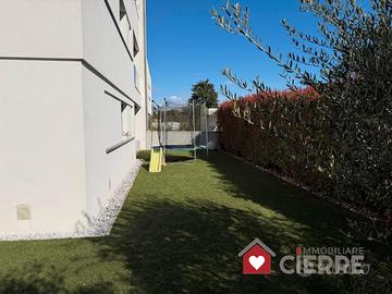 Proponiamo in vendita un raffinato appartamento con giardino privato situato al piano terra di una palazzina moderna a basso impatto ambientale, inserita in un contesto condominiale elegante e di prestigio. L'abitazione si apre su un ingresso diretto su un'ampia e luminosa zona giorno, armoniosamente collegata alla cucina abitabile. Dalla cucina si accede ad un'ampia zona esterna coperta affacciata sul giardino privato. Da questo ambiente esterno si accede inoltre alla comoda lavanderia, mentre il giardino sviluppato a "L" accompagna l'intera abitazione. La zona notte è composta da tre camere da letto, di cui una matrimoniale e due singole, tutte dotate di porta finestra con accesso diretto al giardino o allo spazio esterno, soluzione che dona luminosità naturale e una piacevole continuità tra interno ed esterno. Completano l'immobile due bagni moderni, entrambi con doccia. L'immobile viene proposto parzialmente arredato e si distingue per le elevate prestazioni energetiche e per le dotazioni tecnologiche di ultima generazione: predisposizione per ventilazione meccanica controllata, climatizzazione, porta blindata e impianto di allarme. Completano la proprietà un'ampia cantina e l'autorimessa, elementi sempre più ricercati che rendono la soluzione ancora più funzionale e completa. Una proposta elegante, funzionale e pronta da vivere, perfetta per chi desidera una casa con giardino in un contesto esclusivo. € 475.000,00 - Classe energetica "A4"