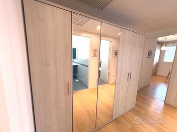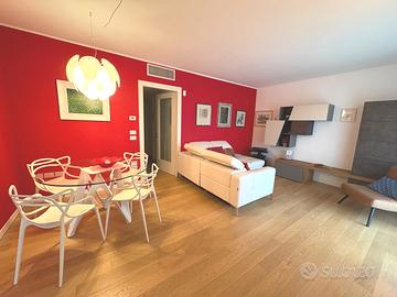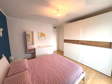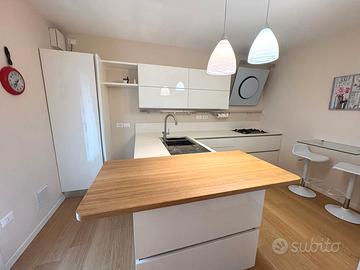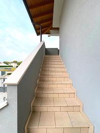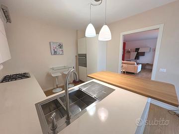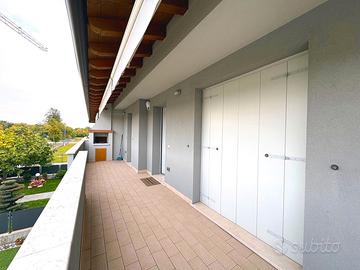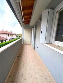 In zona residenziale del quartiere Torre, proponiamo splendido appartamento in quadri-familiare, pari al nuovo, usato pochissimo, primo piano con ingresso indipendente con piccolo giardino privato, costruzione del 2013, composto da: ampia terrazza in ingresso con caminetto, soggiorno, cucina abitabile, ampio disimpegno, tre camere, ulteriore terrazza coperta con ripostiglio/lavanderia, due bagni, oltre a cantina/lavanderia e doppio garage nel seminterrato. Finiture eccellenti, impianto geotermico, climatizzazione canalizzata, impianto d'allarme, zanzariere e tende da sole. L'immobile viene venduto completamente arredato. Classe energetica A3 - EPgl,nren 29,8940.