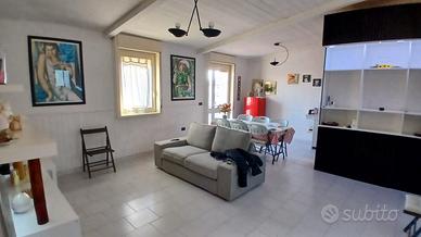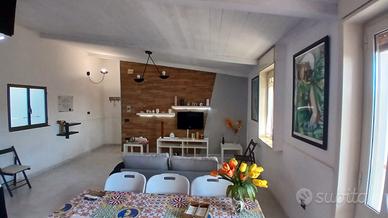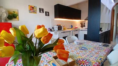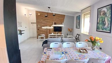 All'interno troviamo un ampio e luminoso open space composto da una graziosa cucina in muratura e un soggiorno spazioso