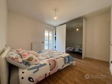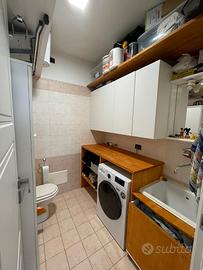 L'appartamento si dispone a piano terra di ampio e luminoso soggiorno con angolo cottura con affaccio su riservato giardino, disimpegno, 1 camera da letto matrimoniale, 1 camera da letto arredata a sala/sala cinema, 1 bagno principale, 1 lavanderia con wc.