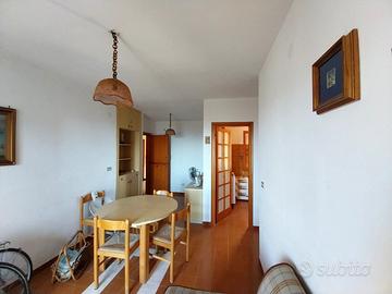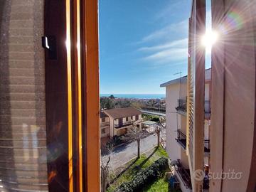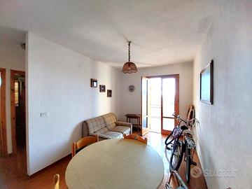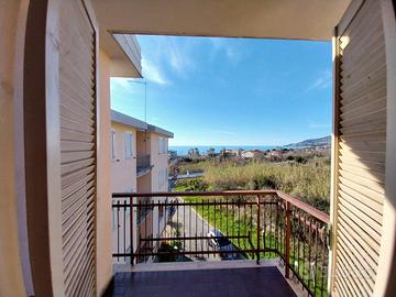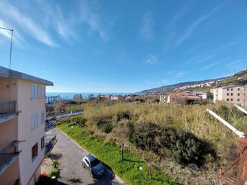 soggiorno, due camere, cucinotto, bagno, due terrazzini vista mare, posto auto condominiale.