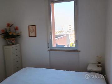 in un condominio di 62 appartamenti ne vendiamo uno al 4° piano con vista mare, ammobiliato, ampio soggiorno con cucina, due camere matrimoniali, terrazzo 6 mq, bagno con box doccia, due climatizzatori e posto auto privato.