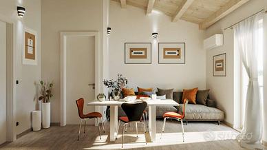 Allinterno del nuovo complesso Corte Pola prende forma una casa pensata per accogliere, sorprendere e far sentire subito a proprio agio. Non solo uno spazio da abitare, ma un ambiente capace di trasmettere calore, equilibrio e qualità della vita. Situato al secondo piano e protetto da un portoncino blindato, lappartamento si apre su ambienti luminosi e armoniosi, dove ogni spazio è stato studiato per offrire comfort e funzionalità. Il soggiorno con angolo cottura è il fulcro della casa: un ambiente accogliente, impreziosito dal tetto in legno a vista con travi, che dona carattere e unimmediata sensazione di calore. Qui la luce naturale entra generosa, accompagnando i momenti quotidiani e rendendo ogni istante ancora più piacevole. I due balconi privati completano lo spazio living, offrendo sfoghi esterni ideali per rilassarsi o condividere momenti allaria aperta. La zona notte, ben distinta, è pensata per garantire intimità e tranquillità. La camera matrimoniale è un rifugio dedicato al riposo, mentre la seconda stanza si adatta con facilità alle diverse esigenze: perfetta come cameretta, studio o stanza per gli ospiti. Il bagno, moderno e curato, è dotato di sanitari sospesi e progettato per unire estetica e praticità. Consegna prevista per Aprile 2027. A rendere questa abitazione ancora più interessante è lattenzione alla qualità costruttiva e allefficienza energetica: classe A, impianto fotovoltaico da 1,5 kW, isolamento termoacustico evoluto, infissi in legno ad alte prestazioni con persiane in pino e sistema di climatizzazione caldo/freddo trial, pensato per garantire il massimo comfort in ogni stagione. Completa la proprietà un comodo RIFERIMENTO: 34231067-88 CLASSE ENERGETICA: