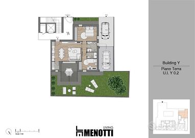 (Riferimento: 110) Carate, nuovo Progetto immobiliare denominato MENOTTI LIVING che prevede la realizzazione di 2 Ville esclusive e 8 appartamenti di nuova costruzione. E' una nuova ed elegante realizzazione che impiega le migliori tecnologie costruttive ed energetiche e che si classifica al top dell'efficienza energetica, in classe A. L'intero complesso sarà recintato per permettere la massima sicurezza ai condomini. Un progetto che fa della sostenibilità ambientale ed energetica, della cura del dettaglio e del confort abitativo uno dei principali punti di forza. Il complesso residenziale sorge in posizione strategica, a pochi passi dal centro cittadino che è raggiungibile a piedi, ma in zona tranquilla e riservata. Appartamenti dal design innovativo che godranno di grande luminosità grazie alla presenza di grandi vetrate e che saranno dotati delle migliori soluzioni tecnologiche ed estetiche, di ampi giardini, patio e comodi box singoli. Saranno caratterizzati da materiali e finiture di alto livello, capitolato di pregio e da una progettazione interna funzionale e curata nei minimi dettagli. In particolare proponiamo in vendita splendido appartamento trilocale con giardino privato di 107 mq composto da ingresso, soggiorno con cucina a vista e zona pranzo, camera da letto matrimoniale, seconda camera da letto, due bagni e lavanderia/ripostiglio. La posizione privilegiata, a meno di 1 Km dal centro cittadino, immersa nel verde del Parco regionale della Valle del Lambro, garantisce la vicinanza ai principali servizi e centri culturali, rimanendo tuttavia nel relax della natura. Soluzione ideale per chi cerca un immobile di nuova costruzione circondato dal verde e vicino a Milano, con uno sfogo esterno godibile, e per chi non vuole rinunciare alla comodità del centro cittadino e anche alla tranquillità e alla riservatezza. Tecnologia moderna, eleganza e pregiate finiture.