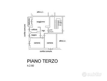 Appartamento IN ASTA al piano terzo, composto da disimpegno dingresso, soggiorno con angolo cottura, due camere, un bagno, un balcone, oltre vano di cantina al piano interrato.