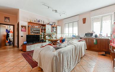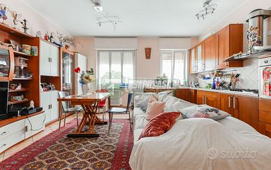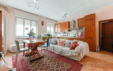 L'immobile è così composto: ingresso su LUMINOSO E AMPIO soggiorno con cucina a VISTA, il disimpegno ci accompagna poi alle camere MATRIMONIALI e al bagno.