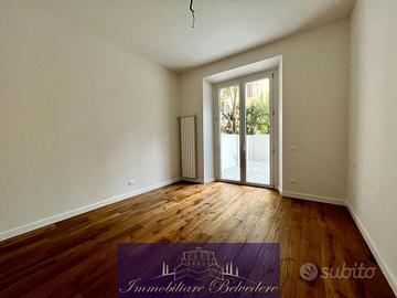 In piacevole contesto residenziale, in via interna e lontana dal traffico cittadino, IMMOBILIARE BELVEDERE propone in vendita ampio e luminoso appartamento (83 mq ca) situato al piano terra rialzato composto da: ingresso, soggiorno con angolo cottura, due camere da letto matrimoniali con doppi servizi oltre a resede frontale di 30 mq e giardino privato di 46 mq. L'immobile verrà completamente ristrutturato con consegna chiavi in mano prevista per Aprile 2026, acquistando in questa fase sarà ancora possibile personalizzare le rifiniture interne. Termosingolo classe energetica G. Completa la proprietà una cantina/taverna di 28 mq ca con accesso diretto dal giardino privato.