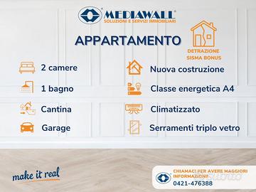(Riferimento: BQ-173-RV) Fossalta di Portogruaro (Rif. BQ-173-RV). NUOVA COSTRUZIONE | DETRAZIONE SISMA BONUS €81.600 | CLASSE A4. Appartamento bicamere al piano terra composto da ampia zona giorno di 40mq che comprende cucina e soggiorno open-space, zona notte con ampia camera matrimoniale, camera singola, bagno finestrato con doccia. L'appartamento viene venduto completo di CANTINA e GARAGE.