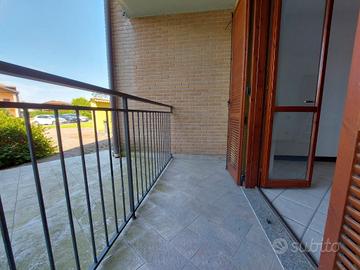 Trilocale di mq 80 posto a piano terreno, composto da soggiorno con angolo cottura, disimpegno, bagno con doccia, camera matrimoniale con terrazzino coperto e cameretta.