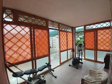 La superficie catastale di 82 mq è suddivisa in: soggiorno, cucina, due camere, bagno finestrato con doccia e vasca da bagno, ripostiglio. Due ampi terrazzi di circa 18 mq ciascuno, di cui uno verandato per la superficie di 10 mq.