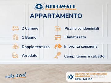 (Riferimento: BS-084-RV) Bibione (Rif. BS-084-RV) COMODO E LUMINOSO APPARTAMENTO BICAMERE RISTRUTTURATO IN PRONTA CONSEGNA | BAGNO FINESTRATO CON BOX DOCCIA | DOPPIO TERRAZZO ABITABILE | COMPLETAMENTE ARREDATO | CLIMATIZZATO | PISCINE CONDOMINIALI + CAMPI DA TENNIS-CALCETTO + RISTORANTE E BAR | POSTO AUTO COPERTO DI PROPRIETA' | DOPPIO TERRAZZO | DISPONIBILITA' IMMEDIATA | TETTO CONDOMINIALE RIFATTO! A soli 600mt dal centro ed a circa 1,2 km dalla spiaggia, in curato residence con piscine, bar, ristoranti, campi da calcetto/tennis ed in zona residenziale ottimamente servita (bar, ristoranti, tabacchino, ufficio postale, luna park, ecc.), proponiamo in vendita, in palazzina costruita agli inizi degli anni '80, quest'interessante appartamento bicamere, climatizzato (pompa di calore), posto al 3° ed ultimo piano (condominio servito da ascensore) così composto: ingressino, ampia cucina/soggiorno open-space con annesso terrazzo abitabile, disimpegno, due camere da letto entrambe matrimoniale ed entrambe con accesso al secondo terrazzo abitabile e bagno finestrato con box doccia e bidet completamente riqualificato. Completa la proprietà al piano terra il posto auto coperto di proprietà. L'appartamento viene ceduto COMPLETAMENTE ARREDATO come da fotografie; la cucina è dotata di piano cottura e frigorifero. Il tetto è già stato oggetto di riqualificazione condominiale, mentre l'appartamento al suo interno ha subito i seguenti lavori: installazione del portoncino blindato, riqualificazione della pavimentazione, sostituzione battiscopa, riqualificazione parziale dell'impianto elettrico, rifacimento totale del bagno (inclusi gli impianti), installazione del climatizzatore in pompa di calore (da 18.000 btu), sostituzione del boiler elettrico, impermeabilizzazione e rifacimento di entrambi i terrazzi. Rendita catastale molto bassa che permette di abbattere i costi sul passaggio di proprietà! Spese condominiali mini