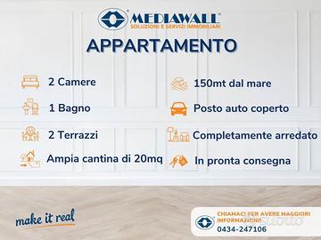 (Riferimento: BS-010-RV) Bibione - Lido dei Pini (Rif. BS-010-RV) A SOLI 150MT DALLA SPIAGGIA | PALAZZINA IN OTTIME CONDIZIONI GENERALI COMPLETAMENTE RISTRUTTURATA | AMPIO APPARTAMENTO BICAMERE | 3° ED ULTIMO PIANO | DUE CAMERE (ENTRAMBE MATRIMONIALI | DUE TERRAZZI | AMPIA CANTINA DI 20MQ | POSTO AUTO COPERTO NUMERATO | CLIMATIZZATO (POMPA DI CALORE) | COMPLETAMENTE ARREDATO | 6 POSTI LETTO TOTALI | APPARTAMENTO IN PRONTA CONSEGNA! A soli 150mt dalla splendida spiaggia di "Lido dei Pini" ed a meno di 5 minuti da Piazzale Zenith, proponiamo in vendita quest'interessantissimo ed ampio appartamento bicamere in piccola palazzina completamente ristrutturata ed in ottime condizioni generali. L'appartamento si trova al 3° ed ultimo piano, si sviluppa su circa 60mq interni, ospita 6 posti letto ed è così composto: ingresso con accesso diretto all'ampia e luminosa zona cucina/soggiorno open-space con angolo cottura a vista ed accesso diretto al primo terrazzo semi-abitabile, disimpegno climatizzato, camera da letto matrimoniale con accesso al secondo terrazzo abitabile, seconda camera da letto (anch'essa matrimoniale) e bagno finestrato con doccia. Completa, al piano terra, il diritto d'uso esclusivo di un'ampia cantina di oltre 20mq e di un posto auto coperto numerato. Le spese condominiali ammontano circa €700,00 annue e comprendono: pulizia scale, luce scale, amministratore di condominio, assicurazione dello stabile e l'utilizzo dell'acqua. L'appartamento è dotato di impianto di climatizzazione (in pompa di calore) e di lavastoviglie. Un'ottima opportunità in pronta consegna che ti permette un'abitabilità immediata con tutti i confort a due passi dalla meravigliosa spiaggia di Bibione! Contattaci e programma il sopralluogo a te dedicato e/o vieni a trovarci presso il nostro ufficio di Bibione in Corso Europa n. 6!