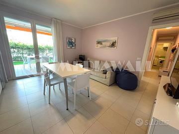 (Riferimento: BS-132-RV) Bibione (Rif. BS-132-RV) RESIDENCE "PARCO DELLE NAZIONI" PARI AL NUOVO | CURATISSIMA PISCINA CONDOMINIALE ED AREE VERDI | AMPIO ED ABITABILISSIMO TERRAZZO CON DOPPIA TENDA DA SOLE E GIARDINO PRIVATO | APPARTAMENTO BICAMERE COMPLETAMENTE ARREDATO | DOPPIO CLIMATIZZATORE ZONA GIORNO/NOTTE (IN POMPA DI CALORE) | INFISSI IN DOPPIO VETRO PVC | AMPIO POSTO AUTO COPERTO DI PROPRIETA' | 7 POSTI LETTO COMODI! All'interno del residence "Parco delle Nazioni", uno dei residence più esclusivi di Bibione, costruito nel 2011, dotato di bellissima piscina condominiale ed aree verdi ottimamente tenute, proponiamo in vendita, con incarico in esclusiva, questo bellissimo APPARTAMENTO BICAMERE di circa 75mq (PARI AL NUOVO), posto al piano terra, con 7 posti letto comodi, così composto: ingresso, ampia zona soggiorno/pranzo open-space con angolo cottura a vista, disimpegno, ampia camera da letto matrimoniale matrimoniale, camera doppia e bagno con box doccia, bidet e lavatrice. Completa la proprietà l'ampissimo terrazzo abitabile (dal quale si accede da ogni stanza) dotato dalla doppia tenda da sole ed annesso giardino curato e recintato, ed al piano semi-interrato, il comodo posto auto coperto. L'appartamento viene ceduto completamente arredato ed ha le seguenti dotazioni: conformità degli impianti (elettrici ed idraulici), serramenti in doppio vetro/PVC, scuri in PVC, doppio climatizzatore in pompa di calore (zona giorno/notte), doppia tenda da sole. Principali distanze: - Spiaggia 500mt circa; - Terme 1,1km; - Centro pedonale 900mt - Supermercati 500mt circa Spese condominiali contenute di circa € 1.500,00- annue che comprendono: pulizia scale, luce scale, amministratore di condominio, assicurazione dello stabile, acqua fredda, manutenzioni parti comuni e piscina. Un'opportunità imperdibile che garantisce di passare al meglio le tue vacanze estive, ma allo stesso tempo, garantisce un ottimo