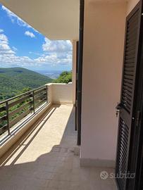 Esterni al piano terra: balcone e giardino privato di 60 mq, ideale per relax all'aperto o cene estive.