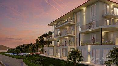 (Riferimento: 131) ULTIMI APPARTAMENTI IN VENDITA BELLISSIMO TRILOCALE CON TERRAZZO VISTA MARE - Sanremo, nuova ed elegante realizzazione che impiega le migliori tecnologie costruttive ed energetiche e che si classifica al top dell'efficienza energetica, in classe A. Progetto immobiliare esclusivo ad uso residenziale di nuova costruzione, circondato da ampi e verdi giardini, a pochi passi dal mare. L'edificio si sviluppa su 4 livelli abitativi ed è costituito da 7 appartamenti di prestigio, dotati di spaziosi giardini e grandi terrazzi panoramici da cui si gode di una splendida vista sul Golfo di Sanremo. Il contesto sorge in posizione invidiabile e strategica, a pochi minuti dal porto turistico Portosole e dalle spiagge della rinomata città di Sanremo, il cui centro cittadino è facilmente raggiungibile a piedi. Nel complesso, che è circondato da ampi spazi verdi, sarà presente una suggestiva piscina esterna privata ad uso esclusivo dei condomini. Appartamenti dal design innovativo che godranno di grande luminosità e che saranno dotati delle migliori soluzioni tecnologiche ed estetiche, saranno caratterizzati da materiali e finiture di alto livello, capitolato di pregio e da una progettazione interna funzionale e curata nei minimi dettagli. Completano il profilo di questo intervento comodi box, predisposti per l'installazione delle colonnine di ricarica per le auto elettriche. In particolare proponiamo in vendita splendido appartamento trilocale posto al primo piano composto da grande soggiorno con ampie vetrate panoramiche e cucina, camera da letto padronale matrimoniale con bagno en suite e balcone riservato, seconda camera da letto e secondo bagno ad uso zona giorno. All'esterno due terrazzi vista mare di 22 mq e 9 mq e sul retro un comodo giardino di 150 mq ad uso esclusivo. Un progetto che fa della cura del dettaglio e del comfort abitativo uno dei principali punti di forza.
