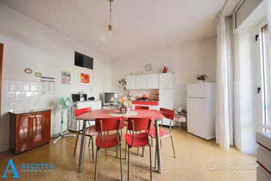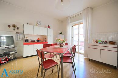 (Riferimento: 042) Proponiamo in vendita a Taranto, presso Via Elio angolo Via Cagliari, un luminoso appartamento di comode dimensioni. Ubicato al quarto piano, all'interno di stabile sprovvisto di ascensore, l'appartamento è composto da un accogliente ingresso, due spaziose e versatili stanze, un'ampia cucina pranzo, un bagno con tramezzo ed un vano studio/pluriuso, completano la proprietà due balconi esterni, di cui uno con affaccio su Via Siracusa ed uno con affaccio su Via Elio. Situato in servitissima zona della città, a portata di attività commerciali e servizi di ogni genere, l'abitazione presenta comodi spazi, ottima luminosità ed è dotata inoltre di impianto di riscaldamento autonomo ed un climatizzatore (funzionamento non verificabile), zanzariere, infissi in alluminio vetro/singolo e porta blindata, il tutto in buono stato manutentivo.