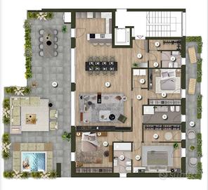 (Riferimento: PCLETERRAZZESULPARCOB23) RIF. PCC16*NUOVO RESIDENCE "LE TERRAZZE SUL PARCO"* In zona OVEST- Mercato Nuovo-Santa Bertilla , adiacente al parco pubblico delle fornaci in Via Farini, nei pressi della chiesa di San Giuseppe, sorgerà un nuovo signorile residence denominato "Le Terrazze sul Parco". Proponiamo ATTICO TRICAMERE posto al sesto piano servito da ascensore così composto: ingresso su soggiorno con angolo cottura con 2 vetrate scorrevole di 4 m. che affacciano sul terrazzo, 3 camere matrimoniali, 3 bagni finestrati, due ampi terrazzi con possibilità di mettere una vasca idromassaggio., al piano terra garage doppio e possibilità posto auto. Ingresso mq. 4,66 Soggiorno-cucina mq.61,16 Ripostiglio mq. 3,44 Disimpegno mq. 2,02 Bagno mq. 3,29 Suite Matrim. mq. 27,27 Bagno mq. 6,89 Camera mq. 11,97 Camera mq. 16,71 Terrazza mq. 20,63 Terrazza mq. 95,15 *POSIZIONE PERFETTA* - A pochi minuti a piedi dal centro storico della città - Accesso facile alle principali arterie della città - Tutti i principali servizi a portata di mano (supermercati, scuole, asili, farmacie, autobus, negozi, parco pubblico, ecc.) *APPARTAMENTI SIGNORILI* - Bicamere, Tricamere e Attici con spettacolari terrazze fino a 100 mq. - Viste mozzafiato sui colli berici e sulle montagne - Possibilità di personalizzazione delle finiture interne *DOTAZIONI DI SERIE* - Impianto fotovoltaico da 1,5 kW - Riscaldamento a pavimento autonomo - Predisposizione condizionatore - Predisposizione VMC (Ventilazione Meccanica Controllata) - Videocitofono con predisposizione domotica - Garage singolo o doppio compreso nel prezzo - Classe energetica A4 *PREZZI* -BICAMERE Da EURO 238.000 -TRICAMERE Da EURO 290.000 -ATTICI Da EURO 460.000 *INFORMAZIONI* - Inizio lavori: Marzo 202