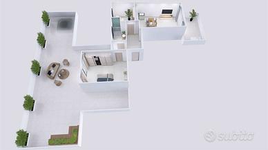 Dal disimpegno, inoltre è possibile accedere alla spaziosa terrazza a livello di circa 100 mq con zona barbecue ideale per trascorrere piacevoli momenti all'aria aperta.