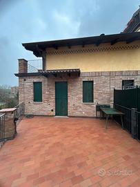 Vendo appartamento trilocale, posto in un condominio del 2002 situato in Roteglia di Castellarano, con accesso indipendente e sviluppato su due piani. L'alloggio, parzialmente ammobiliato, è accessibile dal piano rialzato dove vi è un ampio terrazzo, il soggiorno/pranzo con angolo cottura, un disimpegno ed un bagno; al piano primo vi sono due locali mansardati ed un terrazzo panoramico. La proprietà si completa di un garage al piano terra ed un posto auto scoperto all'interno dell'area cortiliva.