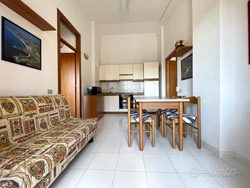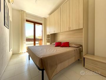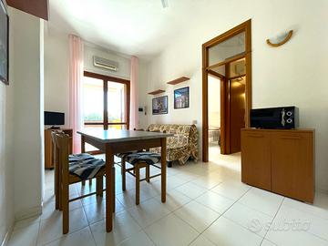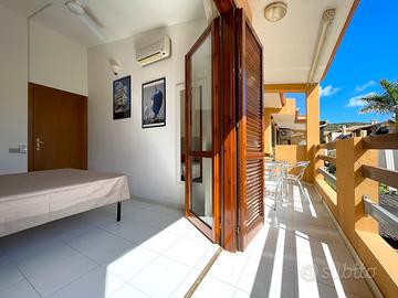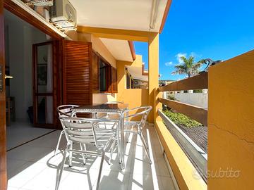 VILLASIMIUS - In via Foscolo, in zona residenziale pianeggiante e vicina ai servizi, trivano al piano primo con spazio esterno. Attraverso un corsello comune, si raggiunge la scala che porta alla veranda esterna, utile come spazio da utilizzare per piacevoli momenti di convivialità. Una cucina-pranzo di forma regolare dotata di parete cottura, divano e tavolo da pranzo, si trova in posizione centrale rispetto ai restanti ambienti della casa. Nell'ala sinistra dell'immobile trova spazio il bagno con doccia, seguito dalla prima camera da letto con ingresso indipendente dall'esterno e di dimensioni sufficienti ad accogliere un letto matrimoniale. La seconda camera da letto, posizionata nell'ala destra, è di ampiezza più generosa. L'immobile si presenta in buono stato manutentivo, è climatizzato e viene venduto arredato. Si consiglia la soluzione a chi è alla ricerca di una residenza estiva o di un investimento dalle ottime rendite e con costi di gestione bassi. Costi condominiali: 300 euro all'anno.