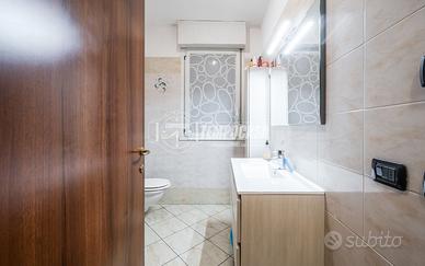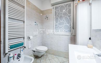 Bagno rifinito in Grès porcellanato con sanitari sospesi e termoarredo.