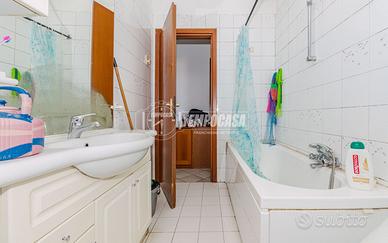 La zona notte, ben distinta dalla zona giorno, è composta da due camere da letto, di cui una matrimoniale di ampia metratura e una seconda camera ideale come cameretta, studio o stanza per gli ospiti. Completa il reparto notte un bagno finestrato con vasca, pratico e funzionale.