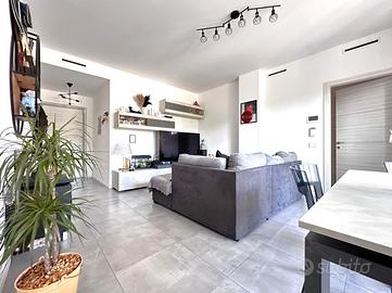 L'abitazione si presenta in condizioni PARI AL NUOVO (abitato solo un anno e mezzo), ha una superficie calpestabile di 80 mq, gode di una doppia esposizione (EST - OVEST) e si compone di: