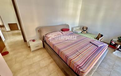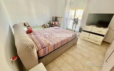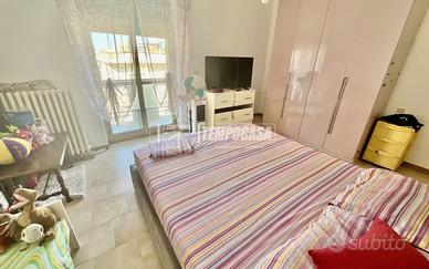 L'appartamento è così composto: ingresso dove veniamo accolti da un soggiorno cucina open space molto spazioso e luminoso con accesso diretto al primo balcone, caratterizzato da grandi porte finestre che permettono un'illuminazione naturale abbondante. Proseguendo, troveremo il disimpegno della zona notte, che dispone di due camere matrimoniali di cui una delle quali con affaccio diretto sul secondo balcone, un bagno fornito di tutti i servizi con vasca da bagno. La soluzione in oltre è dotata di un box auto esclusivo, e inoltre ci offre uno sfogo esterno condominiale.