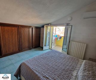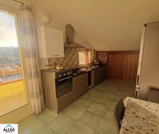 La casa è composta da un ampio e luminoso soggiorno con cucina, due balconi spaziosi e panoramici, due camere da letto e doppi servizi.