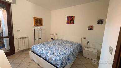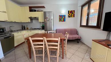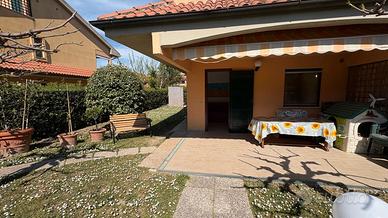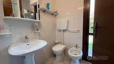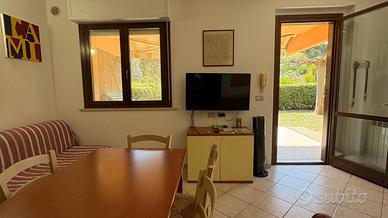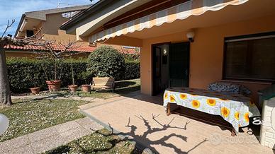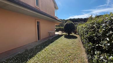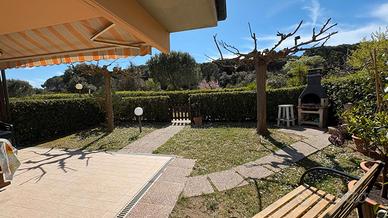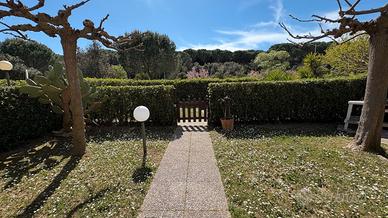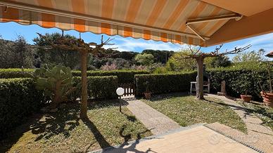 Marina di Castagneto Carducci - In zona tranquilla e residenziale, a 800 mt. circa dal mare, con vista sulla pineta e di fronte ad un ampio parco a verde, vendiamo trilocale angolare a piano terra, con ingresso indipendente da ampio giardino privato, con ottima esposizione, ben luminosa, attrezzato con doccia esterna e barbecue. L' appartamento è una tipologia trilocale posta al piano terra angolare, oltre al grande giardino , troviamo un ampio loggiato coperto pranzabile , entrando è composta da un bel soggiorno con angolo cottura, disimpegno, comodo ripostiglio, studio adibito a cameretta e camera matrimoniale da cui si accede a un loggiato tergale, adibito a locale tecnico e lavanderia, bagno finestrato con doccia. L'immobile è stato costruito alla fine degli anni '90, è ben mantenuto, dispone di porta blindata e finestre in legno con doppi vetri. Posto auto scoperto di proprieta'. Riscaldameno autonomio con caldaia a metano NO CONDOMINIO