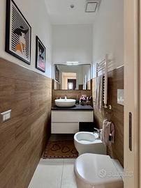 Completano l'immobile un portone blindato, infissi taglio termico PVC, aria condizionata, riscaldamento autonomo, pavimentazione in tutto l'immobile in gress porcellanato.